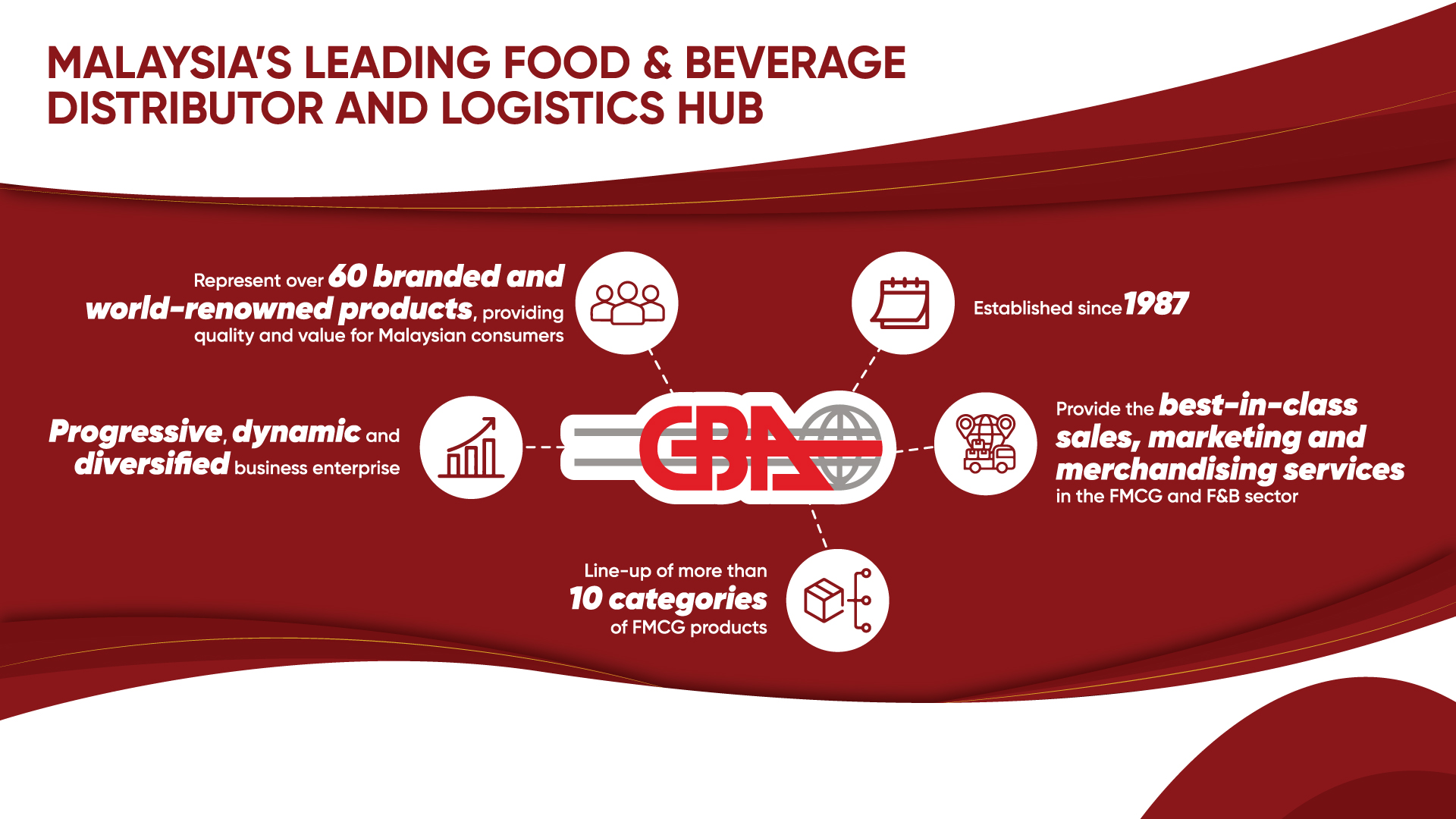 GBA was founded on 1st August 1987, with its first office located above a coffee shop. We actively market & distribute FMCG products in Malaysia. From this humble beginning, the group has grown steadily and currently has a workforce of over 400 personnel. GBA Group is a progressive, dynamic and diversified business enterprise.